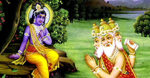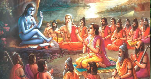 In Dwapara Yuga, Vyas Maharshi was once sitting in a lonely place after taking bath in the sacred water of River Saraswati. Vyas Maharshi had an unfailing eye which could read the past as well as future. He found people in future very materialistic, short lived and unlucky. After dividing Vedas in 4 parts – Rigveda, Yajurveda, Samaveda and Atharvaveda; composing Mahabharata (Itithas) and 18 Puranas which together are considered as 5th Veda. After all this sacred work, Maharshi Vyas was not satisfied. Then he saw Lord Narad Muni who later advised him to meditate Lord Vasudeva and his works.